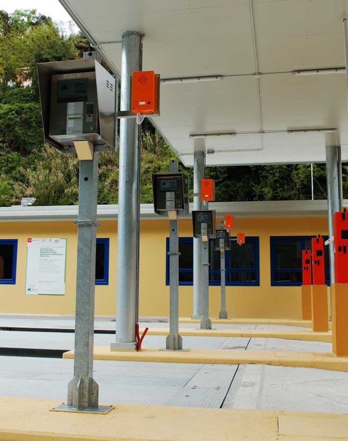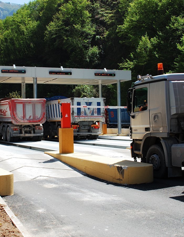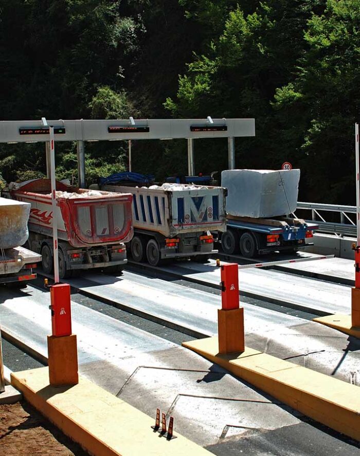 La route des Marbres est une infrastructure réalisée dans le but précis de fournir aux bassins marbriers un système de transport des matériaux moderne et fonctionnel. Le système à été conçu pour servir un complexe de plus de 100 carrières dont environ 70 en activité. Le système a été conçu pour arriver à gérer jusqu'à 1200 voyages par jour sans que des queues puissent se créer. Le temps moyen d'une pesée (entrée dans la station de pesage, pesage et sortie) est d'environ 35 secondes. Tous les jours sont stockés dans les serveurs environ 1Gbyte de données de pesée et photographies.